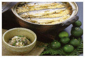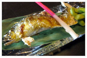 RECIPE あゆのレシピ 塩焼き 鮎をよく洗い、塩(天然塩)を全体につける。(うろこに逆らってつけるとつきやすい)尾びれ等にも付けるとひれ等が焦げにくい。 ガスレンジ等で中火でじっくりと両面焼き上げる。表面を少し焦げ目が付くまでじっくり焼いてから裏返し、さらに焦げ目が付くまで焼き上げる。(火が強すぎると焦げやすい) セゴシ 新鮮な生鮎の三枚におろし、皮を取り除き、塩をしてしばらく置く。 身を食べやすい大きさに切り、酢をかける。 (ゆず酢を使用すると香りがよい。好みによってポン酢などもお試しください) 青しそを小さく刻んで振りかける。 鮎めし(鮎炊き込みご飯)5人分 材料:米3合 / 鮎3尾位(200g〜300g) / 人参11本 / 出汁昆布1〜2枚 / ねぎ少々 / 薄口醤油 40〜50cc / 酒 / みりん適宜(好みで加減) 米を洗いざるに上げ水を切り30分くらい置く。 鮎はうろこと内臓を除き、よく洗ってを水を切る。 人参、ねぎは細かく切っておく。 炊飯器に洗った米を入れ、調味料の量を考慮して少なめに水を入れる。 醤油、酒、みりんを計り入れ、米と混ぜ合わせ目盛までの水を足す。 人参を入れ混ぜ合わせ、その上に鮎を並べ出汁昆布を入れて炊飯器のスイッチを入れる。 沸騰してきたら出汁昆布を取り出す。 炊飯器のスイッチが切れたら15分くらい蒸らす。 鮎を取り出し骨を取り除く。ご飯に鮎の身をほぐしたものと、ねぎの刻んだものを混ぜ合わせて出来上がり。